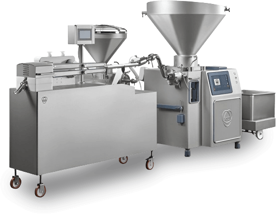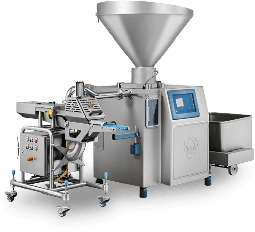 Фаршевый насос бережно подаёт продукт под вакуумом, вакуумная система дозировки обеспечивает точное порционирование и бесперебойную работу